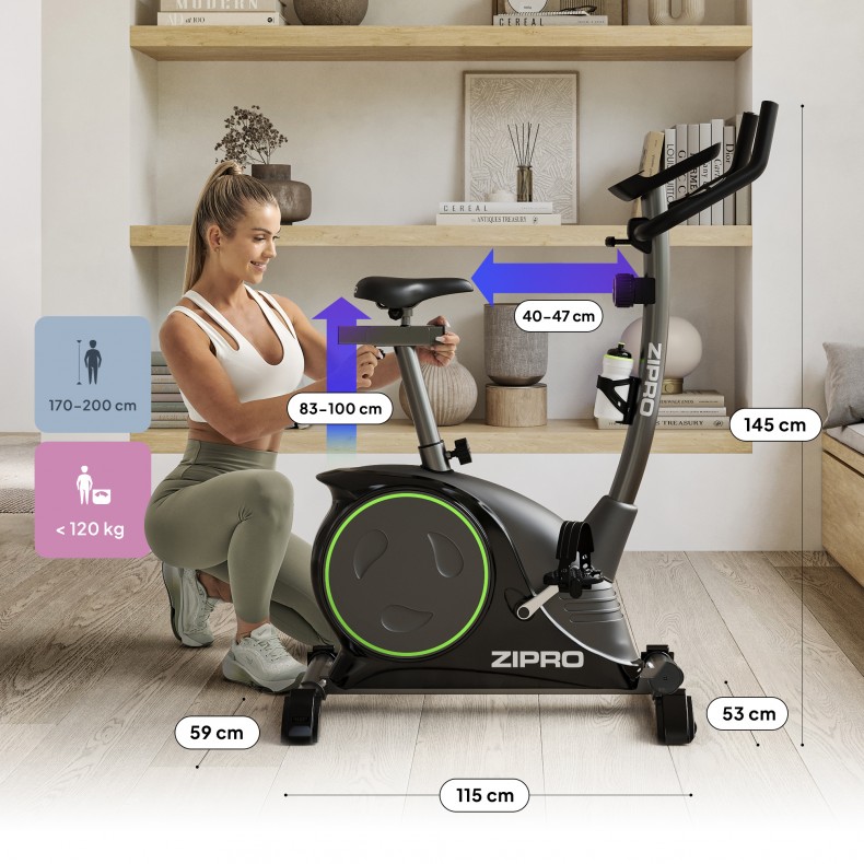 Trening na rowerze ZIPRO Nitro jest efektywny i komfortowy. Wpływa na to jego ergonomiczna budowa oraz zastosowane wielu niezawodnych i funkcjonalnych rozwiązań. Dzięki temu ćwiczenia sprawiają przyjemność, dają satysfakcję i mają pozytywne znaczenie dla zdrowia, a sam rower będzie pasował do wnętrza każdego domu.